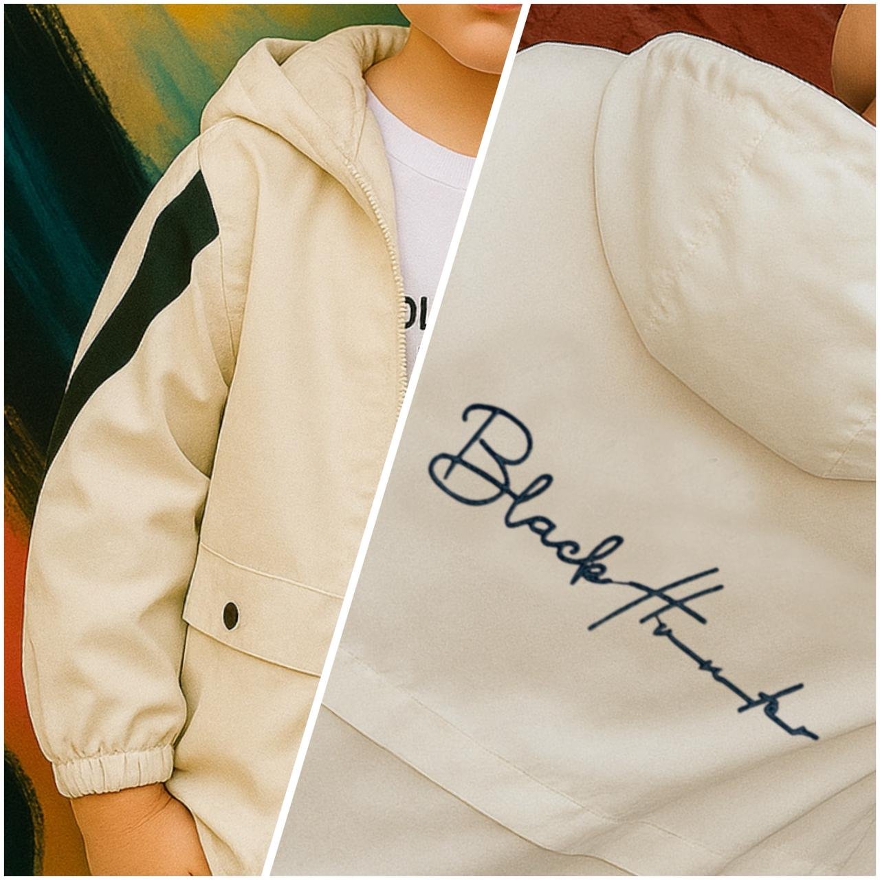 Elevate your child’s wardrobe with this stylish black hooded jacket, featuring eye-catching light blue stripes along the sleeves for a modern touch. Perfect for casual outings and cooler days, this versatile jacket offers both comfort and fashion-forward design. Available in multiple sizes, it ensures a great fit for kids of all ages, making it an essential addition to their everyday look.